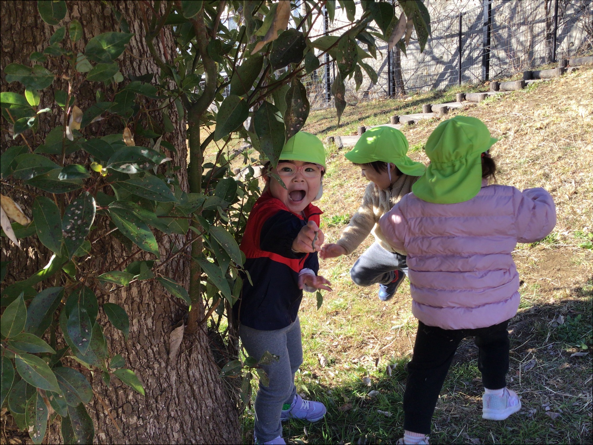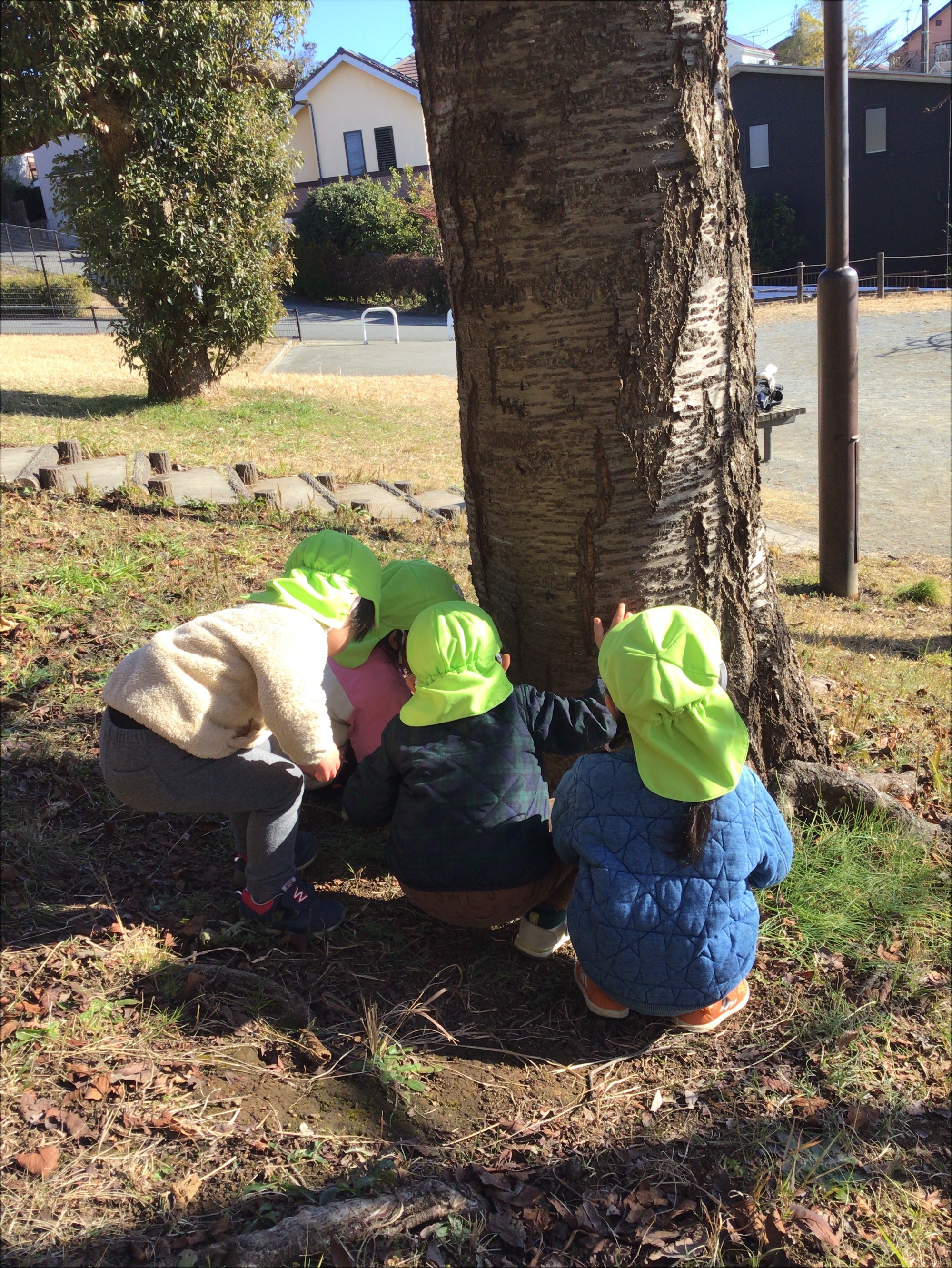 こっこのもり保育園の近隣には、公園がたくさんあります。大きな木の下で作戦会議です。